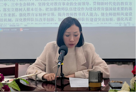 williamhill中国党支部书记杨菁提到,新时代背景下,全院教师要将师德师风建设放在更加突出的位置、要把党风廉政建设贯穿到业务管理中,各科室负责人要带头抓好本科室的党风廉政建设工作;要把全面学习贯彻习近平总书记关于教育的重要论述和关于教师队伍建设的重要指示批示精神作为师德师风建设的首要任务和重点内容,大力弘扬教育家精神,把落实师德师风建设纳入教师考核机制,努力建设高素质教师队伍。