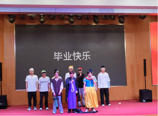 小品《白雪公主与机电大高个》“爆梗众多”,以幽默诙谐的表演,为现场带来阵阵欢声,并拍摄短视频为毕业生送上最真挚的祝福。
