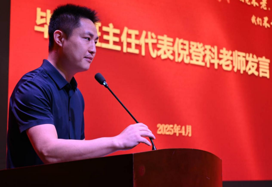 毕业生班主任代表倪登科回顾了四年来与同学们共同进步的朝夕,分享了与同学们相处的点滴,饱含了深深的不舍与嘱托、同时也鼓励毕业生们要坚守初心,在未来的道路上不惧困难,勇敢前行。