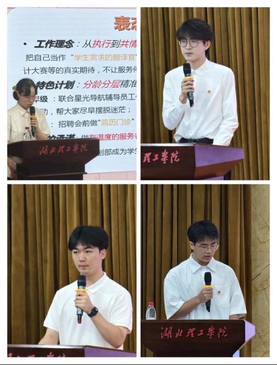 第二十一届团总支学生书记曾学平、学生会主席苏泓铭分别作任职期间工作总结与心得分享,学生各部门负责人依次述职,全面回顾年度工作成果。