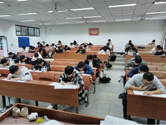 考场上,考生全程遵循真实考研规范,统一提交手机,严格遵守考场纪律;答题过程中,全体考生保持高度专注,以认真的态度完成整场模拟考试,充分借助此次演练检验知识掌握情况、适配考试节奏,展现出机电工程考研学子严谨的备考态度与良好的应考素养。