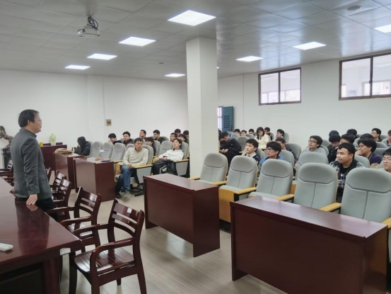 会上,冯大鹏结合近年考研数据与学科发展态势,系统分析了本院优势专业录取趋势及跨考适配方向,逐一点评各专业升学趋势,并在现场简单介绍了院校选择、复试突围、导师联络等多个关键环节。他特别强调,2026年考研报名人数虽然下降了,但竞争依然激烈,本院往届录取率长期稳居全校前列,关键在于同学们“早规划、精定位、强执行”,同时学院也会持续深化为同学们的考研指导帮扶机制。