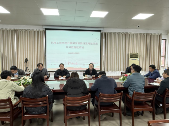 3月23日,williamhill中国举办树立和践行正确政绩观学习教育专题读书班开班仪式,学院党总支部副书记熊泽敏主持会议,学院领导班子、办公室主任、团总支书记、各党支部书记及系部主任共同参与。