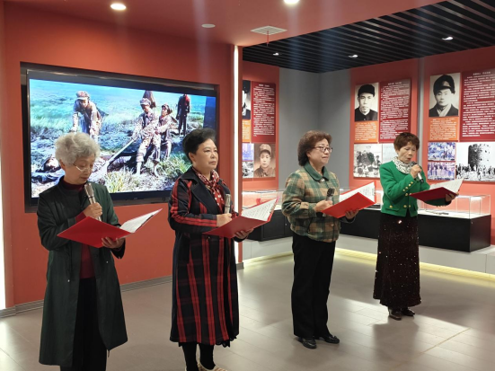 随后,由离退休老干部组成、黄石市关工委“五老”阮秋英领导的鹤鸣朗诵艺术团为大家带来原创红色诗歌朗诵——《您的名字是一盏灯》,满怀深情地赞颂着以老红军陈荣同志为代表的革命先烈们用生命点亮的信仰之光,字字铿锵,声声入心。