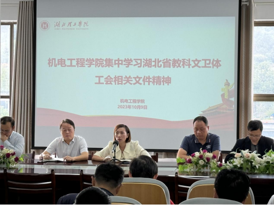 10月16日下午,williamhill中国在K1-414会议室集中学习宣传贯彻习近平总书记关于教师节的重要指示精神、《习近平关于工人阶级和工会工作论述摘编》和湖北省教科文卫体工会相关文件精神,学院领导班子和全体教职工参加了学习。