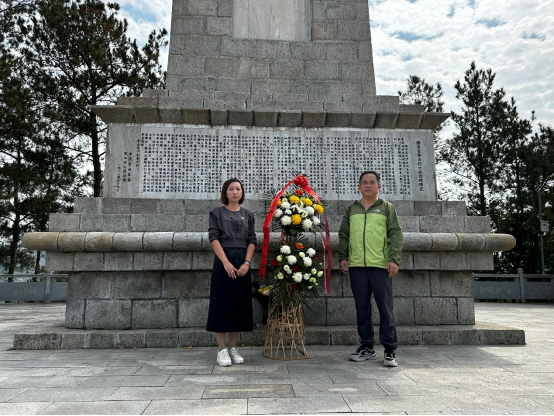 一行人首先在烈士纪念碑前缅怀革命先烈。机电学院党总支书记杨菁、东贝集团党委书记廖汉刚向革命烈士敬献花篮。