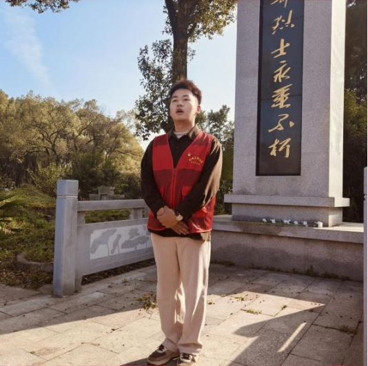 方志刚为大家介绍皇姑岭革命烈士英雄事迹,带领同学们重温了那段艰苦岁月,深刻体悟英烈们对革命理想的崇高追求和舍身忘我、不怕牺牲的革命精神。全体人员面对革命烈士纪念碑肃立默哀一分钟,并向革命烈士敬献鲜花表达无限的哀思与敬仰。