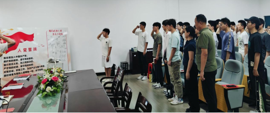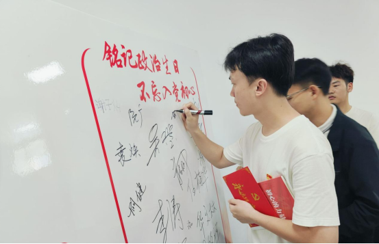 全体党员重温入党誓词,党员代表陆续在签名板上签字,表示始终铭记政治生日,不忘入党初心。