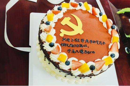 胡涛、程媛、谭梅为党员代表其赠送生日贺卡、书籍《初心的力量》。过“政治生日”和在场的学生党员们一同分享蛋糕。