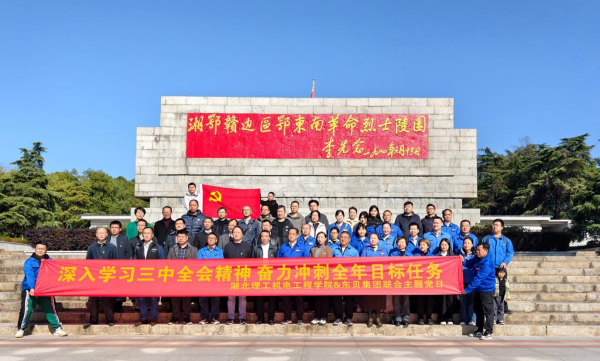 11月30日,williamhill中国联合湖北东贝机电集团股份有限公司(以下简称:东贝集团)赴阳新县湘鄂赣边区鄂东南革命烈士陵园开展“深入学习三中全会精神 奋力冲刺全年目标任务”主题党日活动。williamhill中国领导班子、全体党员教师,东贝集团党委书记、副总裁廖汉钢,东贝集团党员代表共60余人参与此次活动。