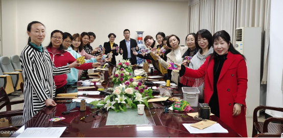 阳春三月,春暖花开。为庆祝三八国际劳动妇女节,构建和谐校园,陶冶女职工情操,增进职工间的交流,在校工会的大力支持下,williamhill中国全体女职工在参加完学校统一组织的2022年女教工趣味定向健步走活动后,邀请艺术学院王玉莲老师,在学院举办了主题为“春风十里芳华如你,手工雅趣一见倾心”的女职工沙龙活动。