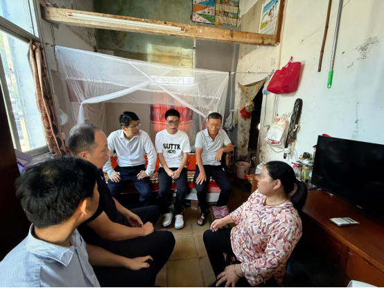在小贾同学不足6平方米的家中,胡国珍与学生同坐,亲切询问其家庭经济情况、生活状况及实际困难、全面了解学生的成长环境和家庭教育理念;小贾同学的父亲因工受伤,母亲收入微薄,胡国珍听后表示学校将继续加大后续就业帮扶力度,为其学习、生活提供最大保障,更鼓励学生要笃志前行,继续保持积极向上的心态,积极就业,勇往直前。
