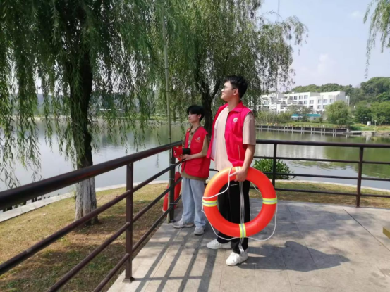 志愿者们定期在社区管理范围内的磁湖湖畔进行巡湖与安全科普。
