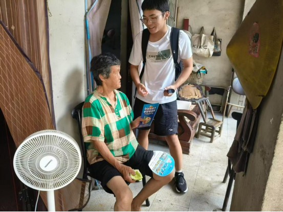 志愿者们深入老年人群体,询问、帮助解决老人生活起居上的问题,同时宣传各类安全知识。