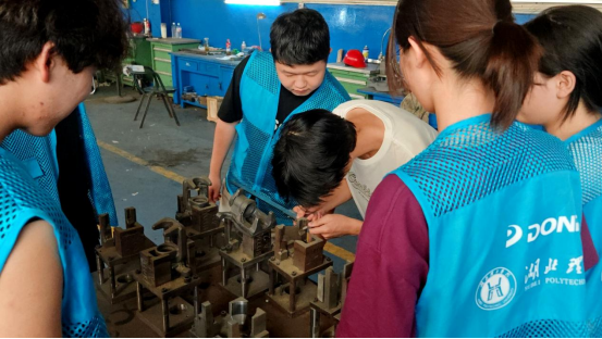 习近平总书记强调,要把思政小课堂同社会大课堂结合起来。高校暑期“三下乡”活动是落实这一重要指示的有力抓手,是让青年学子在社会大课堂中受教育、长才干的重要途径。在当地企业,机电智驭、机电智造、机电智行、机电筑梦、机电智梦五个志愿服务队的志愿者们跟随企业负责人,车间、前线工厂里往返,用青春智慧赋能企业,让工业智慧扎根乡土。
