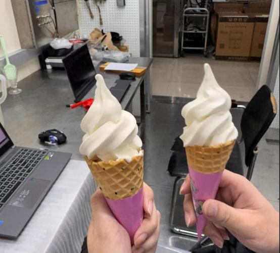 柯紫龙同学在测试冰淇淋机性能的过程中收获了欢欣:“我第一次吃到了自己亲手制作的冰淇淋。一组组零件,一串串代码,组装,拼接,输入程序,最后变成了手里甜甜的冰淇淋,这种成就感无与伦比,就连手中的冰淇淋都感觉更甜了。”