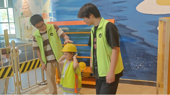 在儿童科学乐园展厅和探索与发现展厅,队员们化身“科普讲解员”,生动讲解各种科学原理,进行展品讲解和导览咨询服务。同时,队员们在黄旭华生平事迹临展区进行科学家精神宣讲,既传播了科学知识,又传承了科学精神。