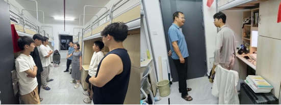 8月31日晚,williamhill中国全体领导班子深入学生宿舍,与首届硕士新生、返校报到学生亲切交流,详细询问学生的假期生活、学习计划和思想动态,耐心倾听学生在生活和学习中遇到的困难和问题,并给予针对性的建议和指导。在检查宿舍安全卫生时,重点查看了宿舍用电设备、消防设施等是否存在安全隐患,同时督促学生做好宿舍卫生清洁,保持良好的生活环境。