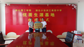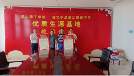 活动中,冯大鹏和夏国宏为湖北小池滨江高级中学授牌“威廉williamhill优质生源基地”。两所中学的领导对招生组一行表示热烈欢迎。同时表示将进一步加强与高校之间在大中衔接教育贯通方面深度合作,形成创新融合的教育发展共同体,努力提高教育教学质量,为国家教育事业的发展做出更大的贡献。