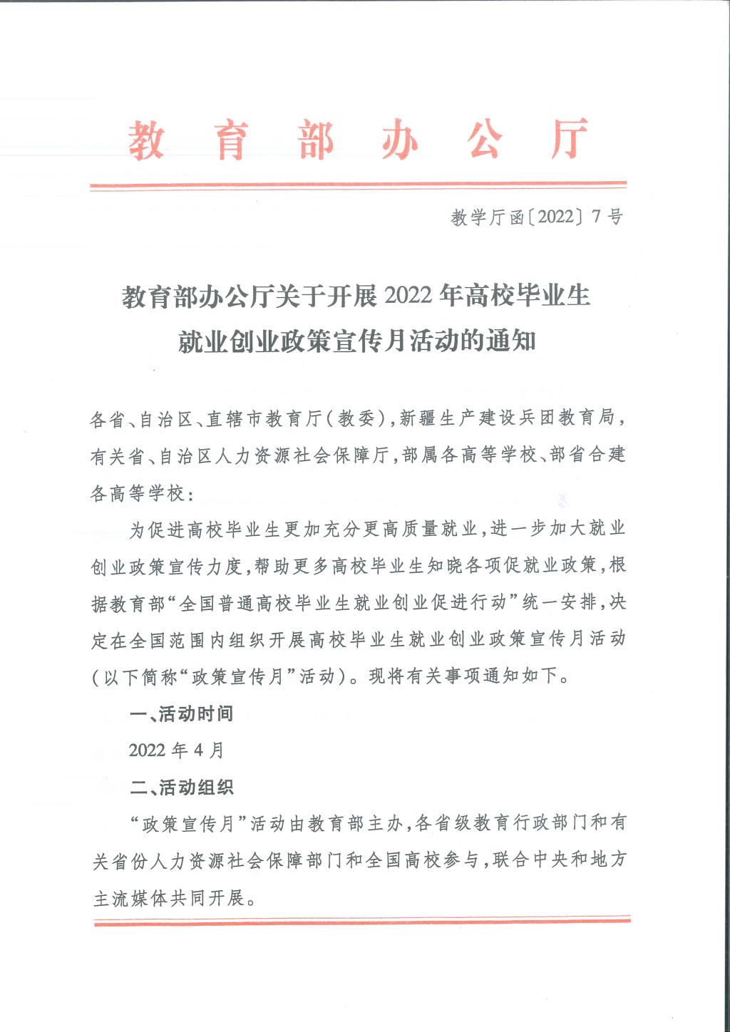 关于开展2022年高校毕业生就业创业政策宣传月活动的通知