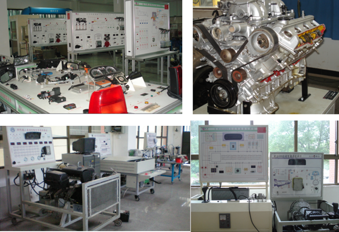 汽车实验室包括汽车构造、汽车性能检测、汽车电子及新能源汽车等专业实验室,实验主要设备有:各类整车10台、电喷发动机总成五台、自动变速器总成四台、汽车电器仿真实验台、汽车拖拉机综合测试仪、汽车故障台式电脑检测仪(PC628)、同步全高速发动机综合分析仪(SOE800)、时代超人电喷发动机电控系统实验台、桑塔纳3000电控发动机自动变速器实验台、元征X431解码器、四轮定位仪、新爱丽舍轿车、帕萨特B51.8T整车电器综合实训台、汽车驾驶训练模拟平台、汽车CAN-BUS综合系统实验台、汽油发动机电涡流测功试验台架、能源丰田普锐斯混合动力系统解剖展示台、新能源汽车-燃料电池动力系统教学平台等,设备价值600余万元。汽车专业实验室完成汽车检测、构造、维修等实践教学任务。2019年新能源实验室计划购置新的教学仪器设备150万元。