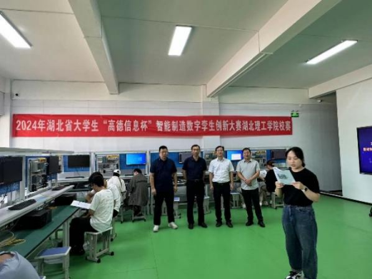 为选拔我校优秀学生队伍参加2024年湖北省大学生“高德信息杯”智能制造数字孪生创新大赛决赛,2024年9月28日上午在williamhill中国举办了威廉williamhill校内选拔赛。选拔赛由智能制造工程系主任王强和党支部书记陈国兴组织实施,裁判组由校内评审专家吴小艳博士及校外评审专家吴华春教授(武汉理工大学)和漆为民教授(江汉大学)组成。